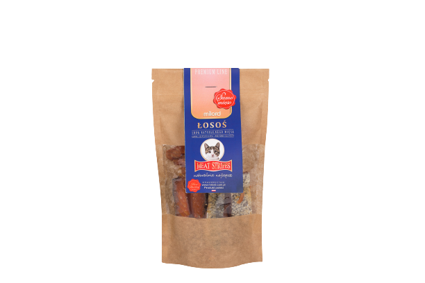 Przysmaki produkowane są wyłącznie z fileta z łososia. Produkowane w Polsce pod nadzorem inspekcji weterynaryjnej - MILORD WNI 24168303.