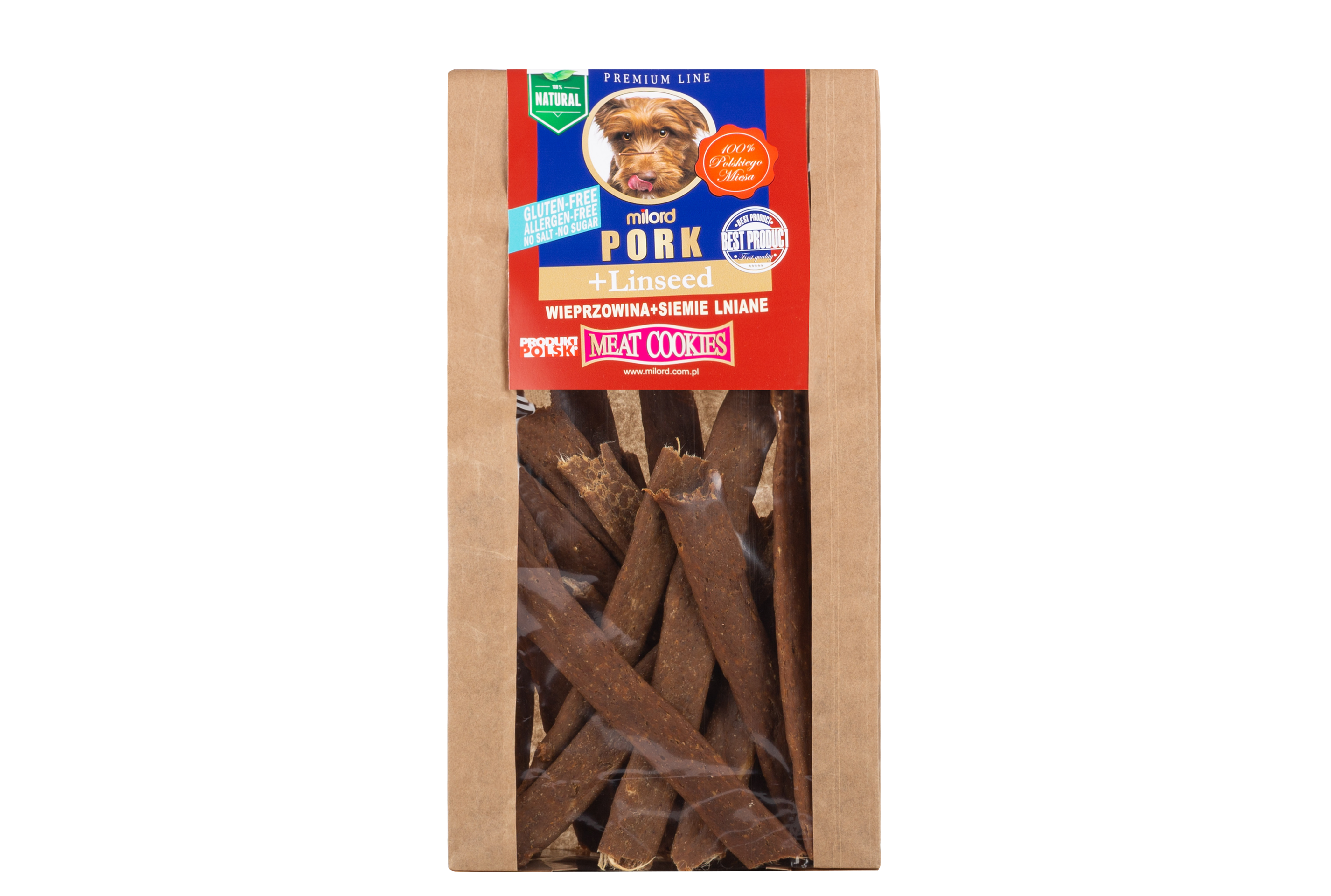 Wieprzowina z siemieniem lnianym - suszone przysmaki dla psa