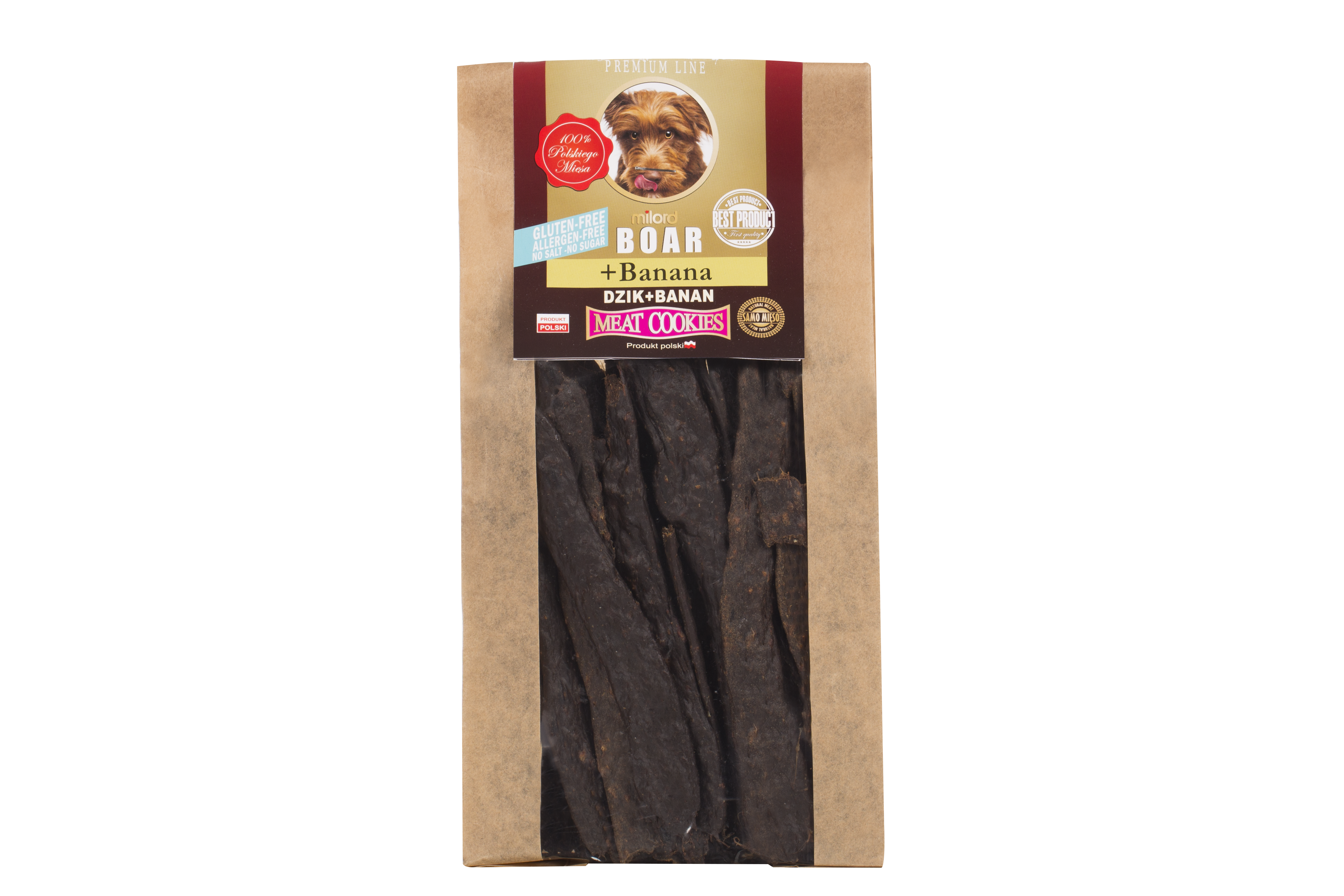 Dzik z bananem Milord to naturalny przysmak dla psa, który łączy wysokiej jakości mięso z dzika z dodatkiem banana. Dzięki prostemu składowi oraz delikatnemu procesowi suszenia przysmak zachowuje swoje naturalne wartości odżywcze i intensywny smak.