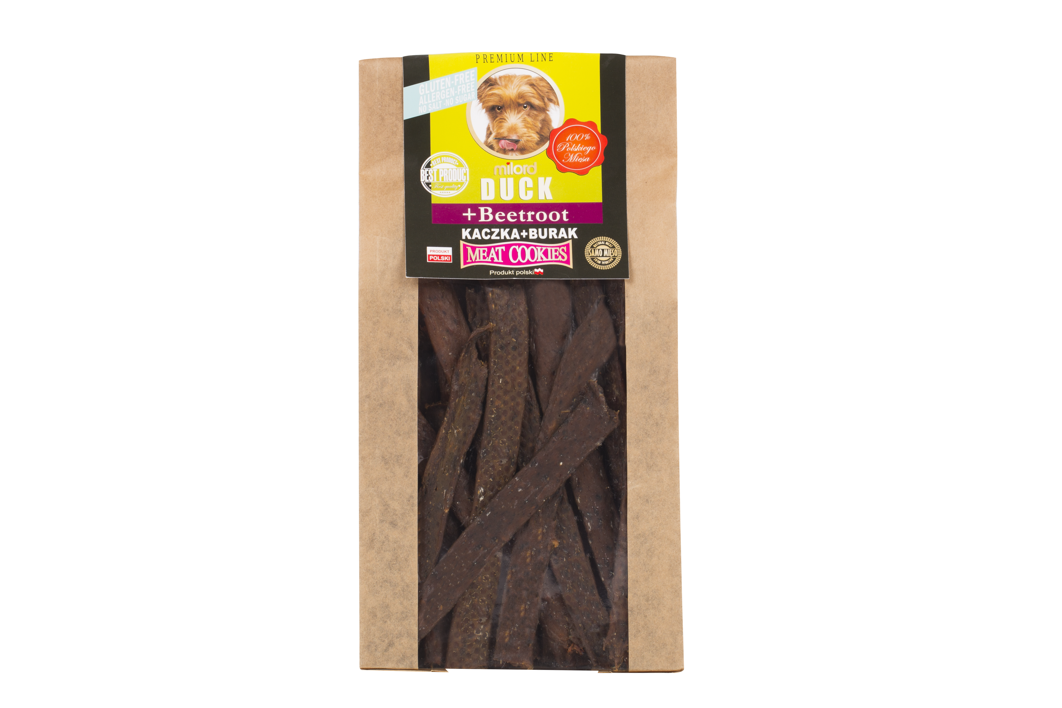 Skład: 75% mięsa z piersi kaczki, 25% buraka