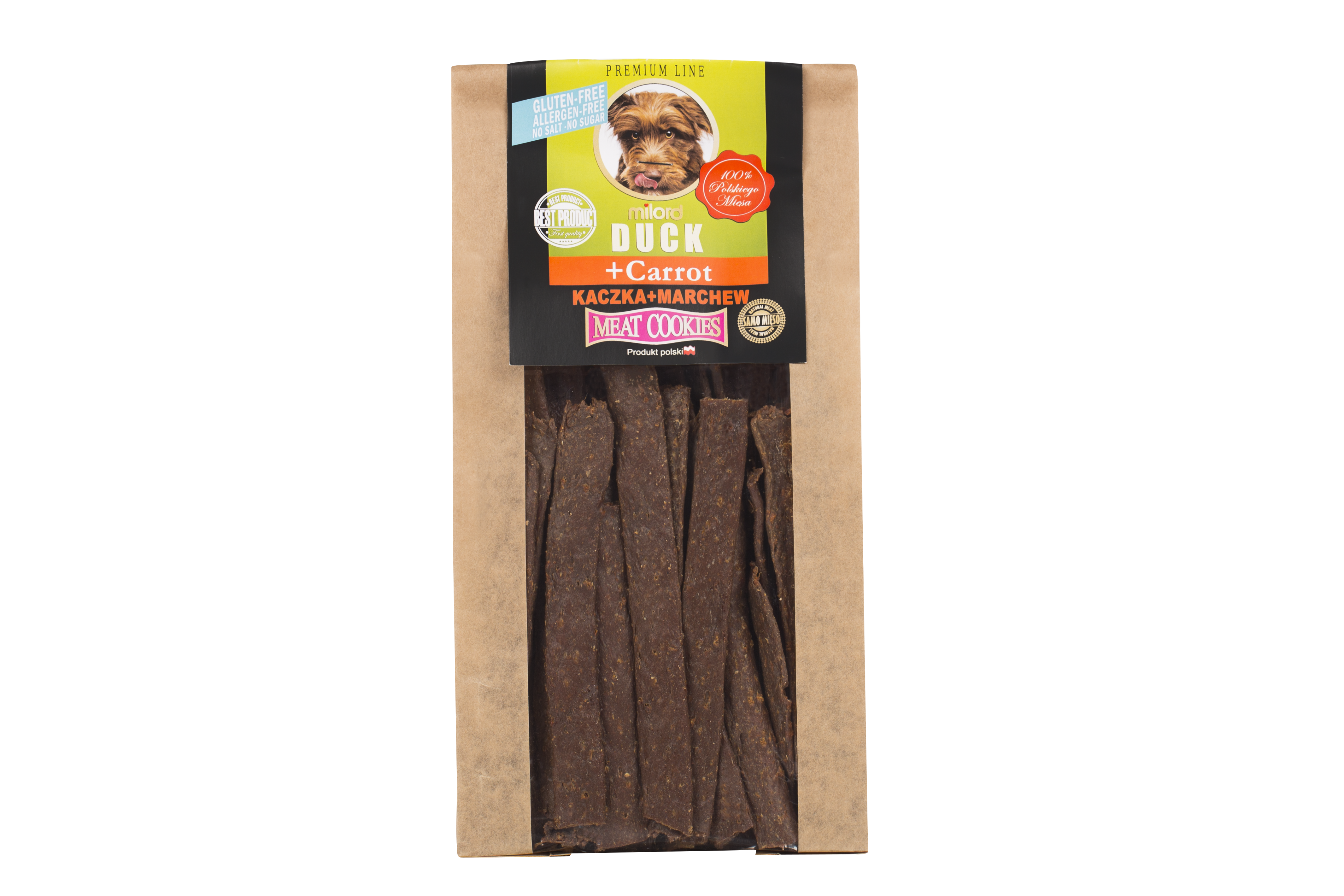 Kaczka z marchwią Milord to naturalny przysmak dla psa, który łączy wysokiej jakości mięso z kaczki z dodatkiem marchwi. Dzięki prostemu składowi oraz delikatnemu procesowi suszenia przysmak zachowuje swoje naturalne wartości odżywcze i intensywny smak.