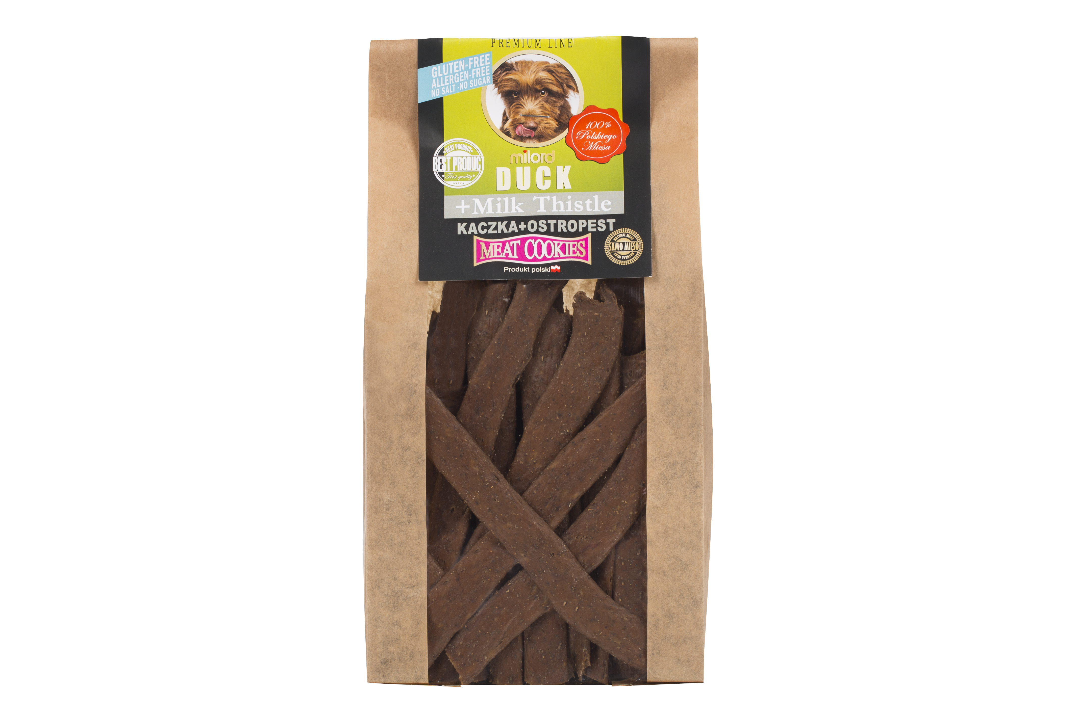 Kaczka z ostropestem Milord to naturalny przysmak dla psa, który łączy wysokiej jakości mięso z kaczki z dodatkiem ostropestu plamistego. Dzięki prostemu składowi oraz delikatnemu procesowi suszenia przysmak zachowuje swoje naturalne wartości odżywcze i intensywny smak.
