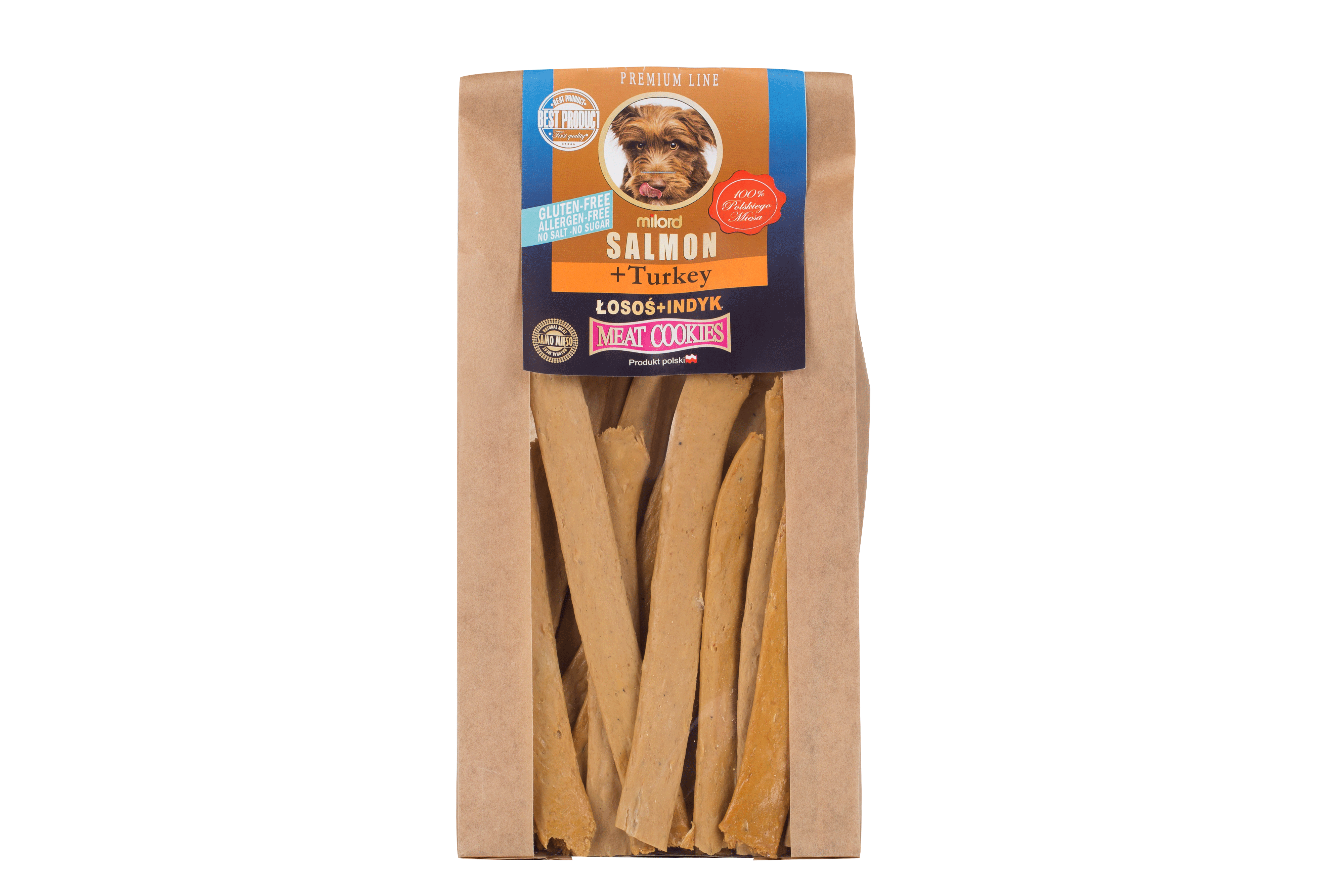 Łosoś z indykiem Milord to naturalny przysmak dla psa przygotowany z wysokiej jakości filetu z łososia oraz mięsa z indyka. Dzięki prostemu składowi oraz delikatnemu procesowi suszenia przysmak zachowuje swoje naturalne wartości odżywcze i intensywny smak.