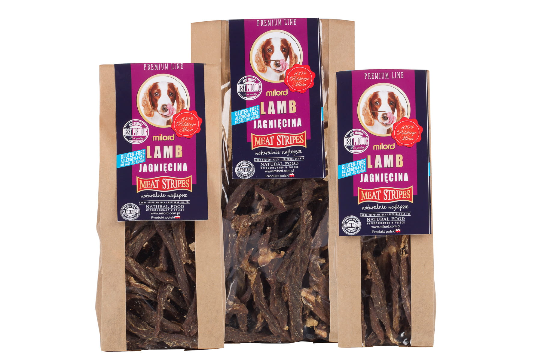 Szukasz delikatnej i zdrowej nagrody dla swojego pupila? Jagnięcina w paskach Milord to naturalny, hipoalergiczny przysmak dla psów wszystkich ras i w każdym wieku. Powstaje w 100% z mięsa mięśniowego jagnięciny – bez konserwantów, zbóż i sztucznych dodatków. Suszony ciepłym powietrzem, zachowuje wartości odżywcze i naturalny smak. Produkowane w Polsce pod nadzorem inspekcji weterynaryjnej - MILORD WNI 24168303.